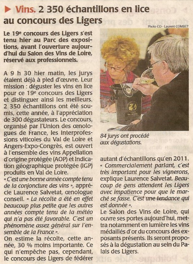 le 19è concours des Ligers s’est tenu hier au Parc des expositions , avant l’ouverture aujourd’hui du Salon des Vins de Loire, réservé aux professionnels.
